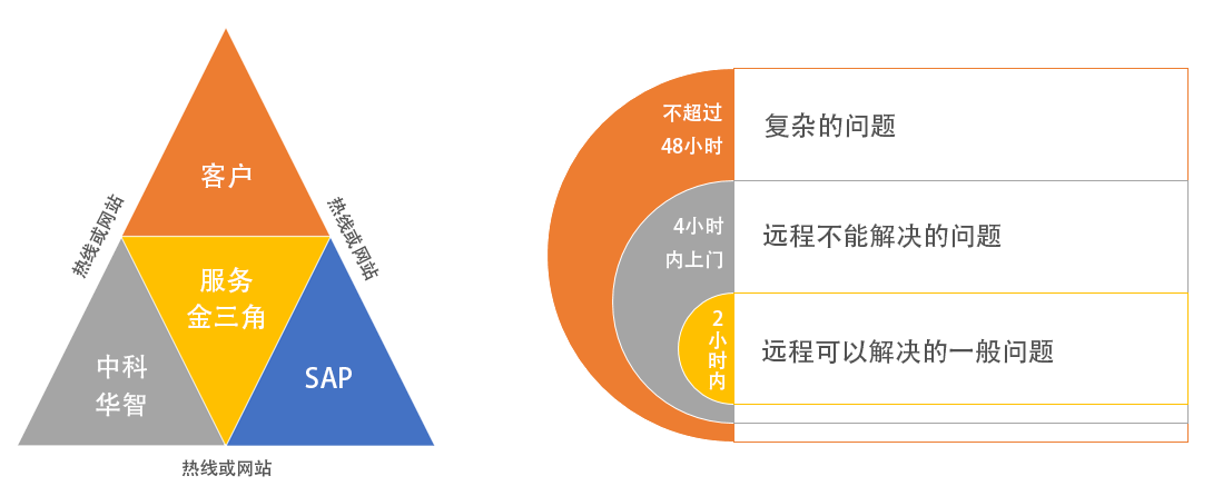 由SAP公司和青島中科華智共同為客戶提供售后服務(wù),青島中科華智提供日常維護(hù)和快速的本地服務(wù),SAP公司提供7*24的咨詢服務(wù),并保證系統(tǒng)持續(xù)的功能升級。