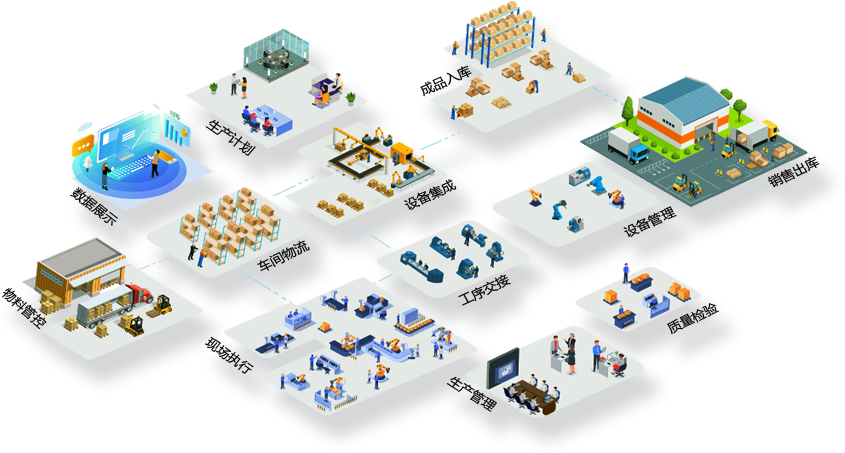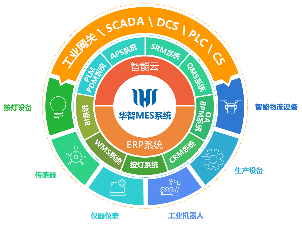 華智MES系統涵蓋人、機、料、法、 環、測6大管理重心,輔助企業做好生產計劃、過程管控、質量追溯、物料管理、設備管理、模具管理、安燈管理、安全環境管理等生產相關的管理內容。在滿足精細化管理的同時,充分考慮降低管理成本和對人員的依賴,通過人性化的功能設計、自動化的數據采集、智能化的管理看板,可以為中層管理和高層決策提供及時有效的數據依據。系統也可實現通過物聯網、云計算、邊緣計算等技術應用,實現工廠內部、集團化公司多廠聯動、業務伙伴(供應商、客戶)之間的業務協同和數據互通。